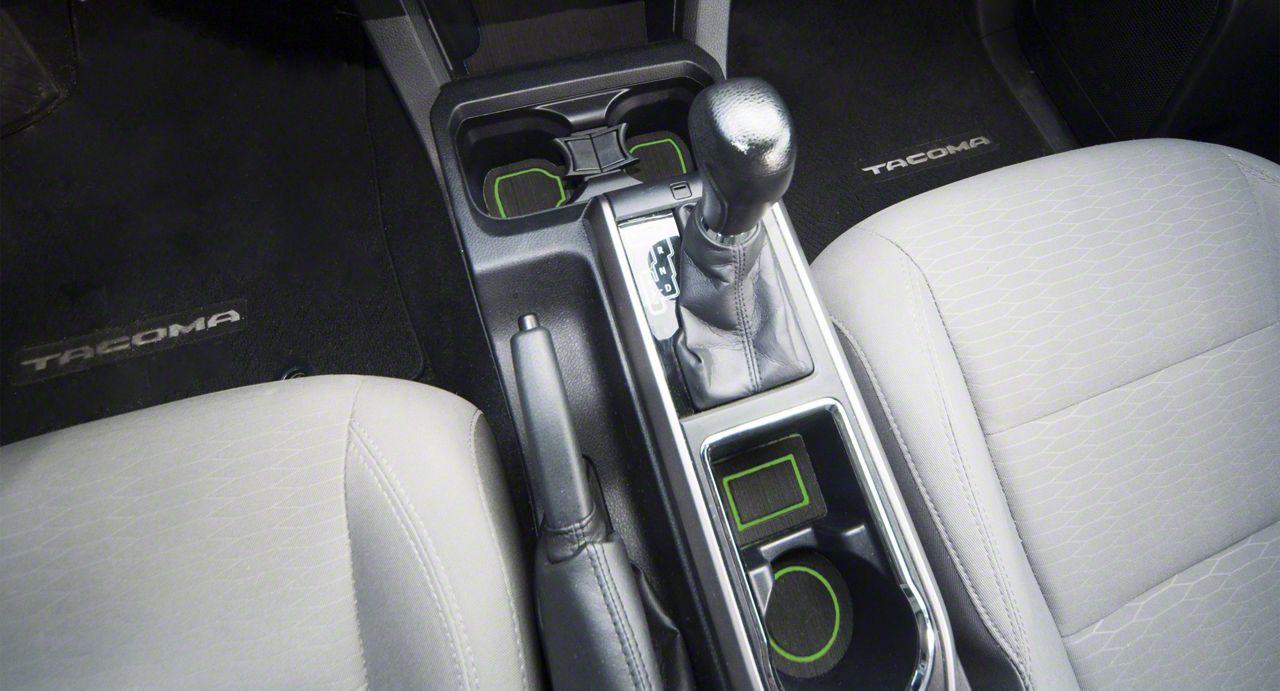 Stylish and Sophisticated Look. The Center Console Cup Holder Inserts are the perfect upgrade for your Toyota Tacoma. These cup holder inserts are designed to replace your stock cup holder inserts and provide a sleek, stylish look that adds a touch of sophistication to your vehicle's interior.