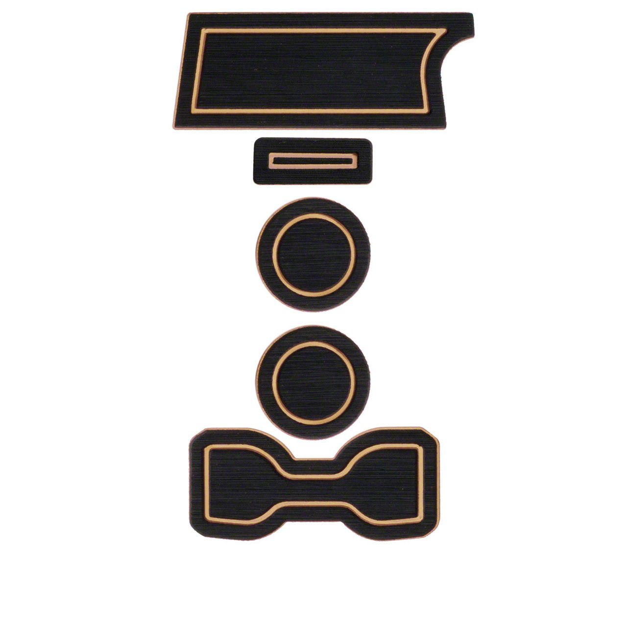 Construction and Appearance. Made from durable, easy-to-clean materials, these inserts protect your cup holders from spills and debris. The dual-color design in black and tan adds a custom touch to your interior, while the anti-slip surface ensures your drinks stay secure during driving.