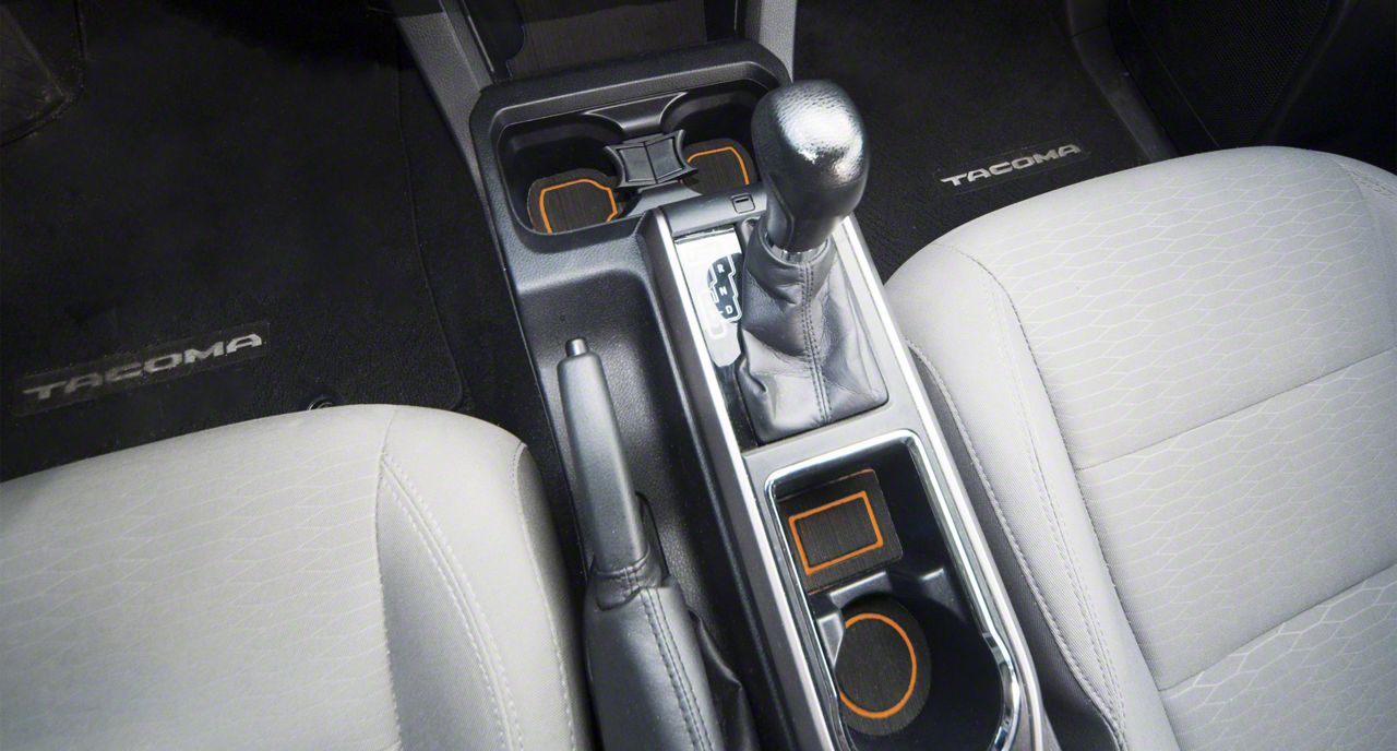 Center Console Cup Holder Inserts without QI Phone Charger Insert; Black/Orange (16-23 Tacoma w/ Automatic Transmission)