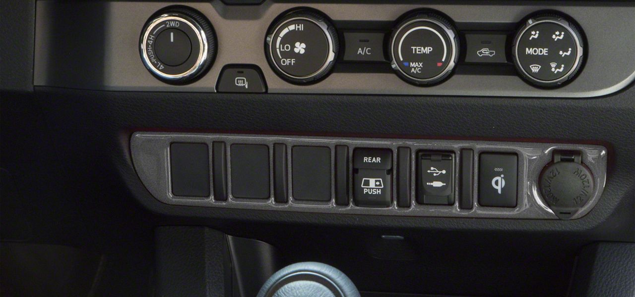 Application. This Center Dash 6-Switch Panel Accent Trim fits 2016-2023 Toyota Tacoma models.