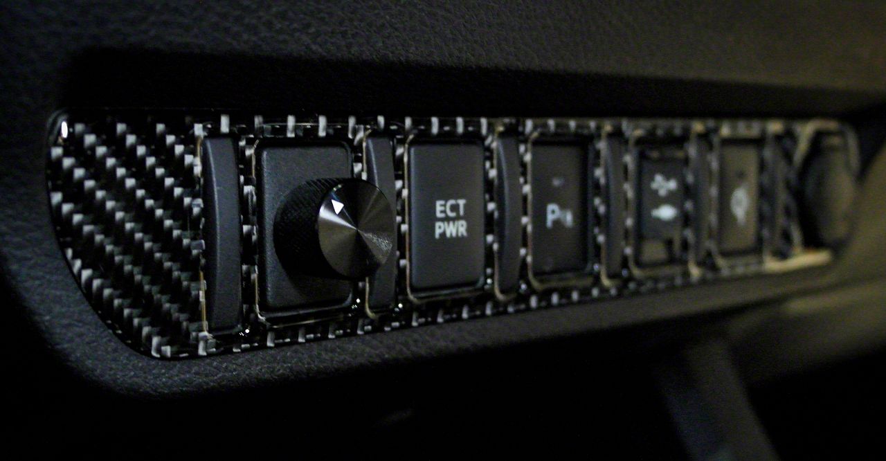 Interior Styling. Add a new interior look to your Toyota Tacoma with this Center Dash 6-Switch Panel Accent Trim; Domed Carbon Fiber. This piece gives a cool style appearance and is positioned over the trim surrounding the center dash switches.