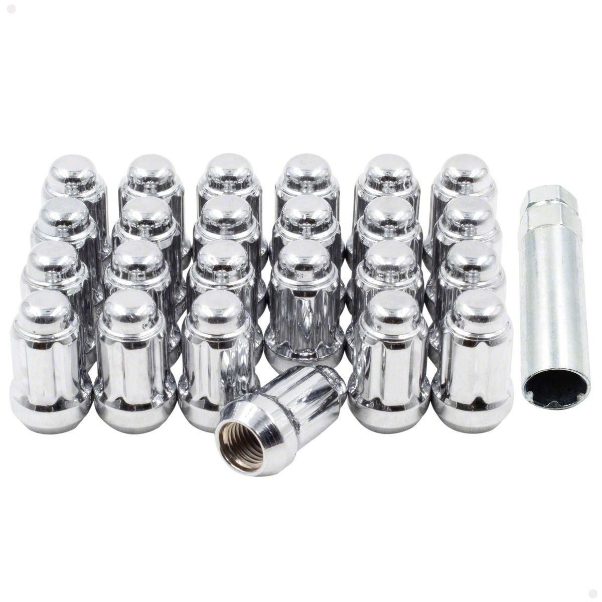Construction and Appearance. Each lug nut is crafted with M12 x 1.5 threads and finished in polished chrome for a durable, corrosion-resistant shine. The precision-machined 6-spline pattern not only adds strength but also provides a unique design that complements your truck’s wheels. Built to SAE standards, the kit ensures both safety and durability.