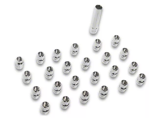 Secure and Durable Fastening. The Chrome Open Acorn Spline ET Lug Nuts offer a stylish and secure solution for your Toyota Tacoma's wheels. Furthermore, this set of 24-lug nuts features a spline ET style, providing enhanced security and preventing unauthorized removal. The open acorn design allows for use with extended wheel studs.