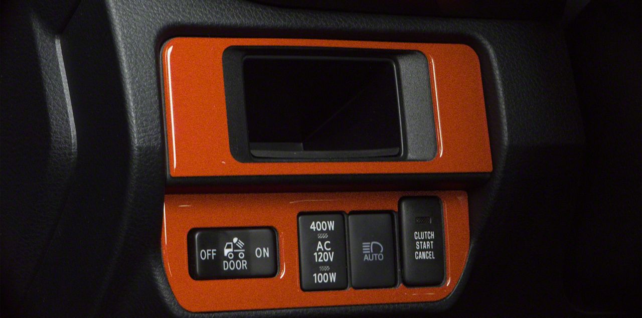 Interior Details. Give your Tacoma a new interior look with the addition of this Dim Light 3-Switch Control Accent Trim; Inferno. You get extra style points with this 2-piece kit that fits perfectly around the OEM light switch panel.