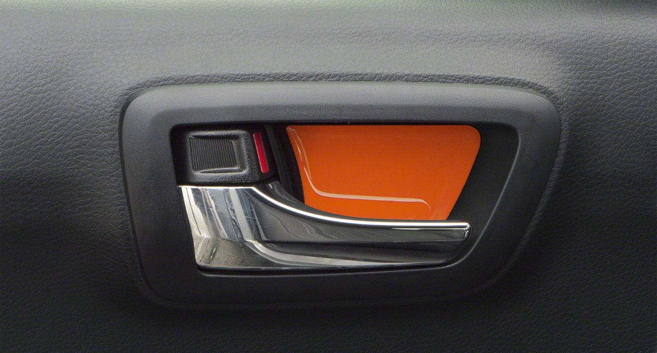 Subtle Styling. This Door Handle Insert Accent Trim; Gloss Orange adds some subtle style to your Tacoma. This set of 4 is positioned perfectly inside each accent behind the door handles to spruce up a spot almost no one gives the time of day.