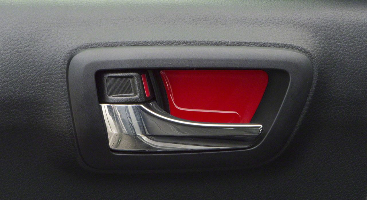 Subtle Styling. This Door Handle Insert Accent Trim; Gloss TRD Red adds some subtle style to your Tacoma. This set of 4 is positioned perfectly inside each accent behind the door handles to spruce up a spot almost no one gives the time of day.