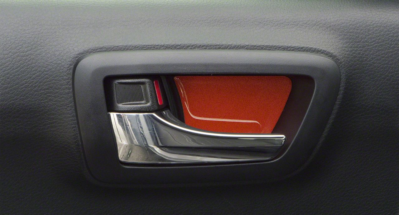 Subtle Styling. This Door Handle Insert Accent Trim; Inferno adds some subtle style to your Tacoma. This set of 4 is positioned perfectly inside each accent behind the door handles to spruce up a spot almost no one gives the time of day.
