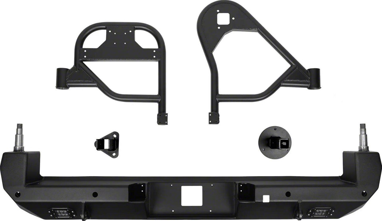 Built for Safety and Convenience. Level up your Toyota Tacoma’s rear setup by swapping its OE rear bumper with this Dual Swing Out Rear Bumper in Black. This upgrade isn’t like your conventional rear bumper since it’s also designed to provide you with safe locations to secure a 37-inch spare tire and truck accessories. Its swing-out arms also have open locking positions, which you can set at 90 or 135 degrees. This way, you won’t have to remove your vehicle’s tailgate to install and use this high-quality rear bumper.