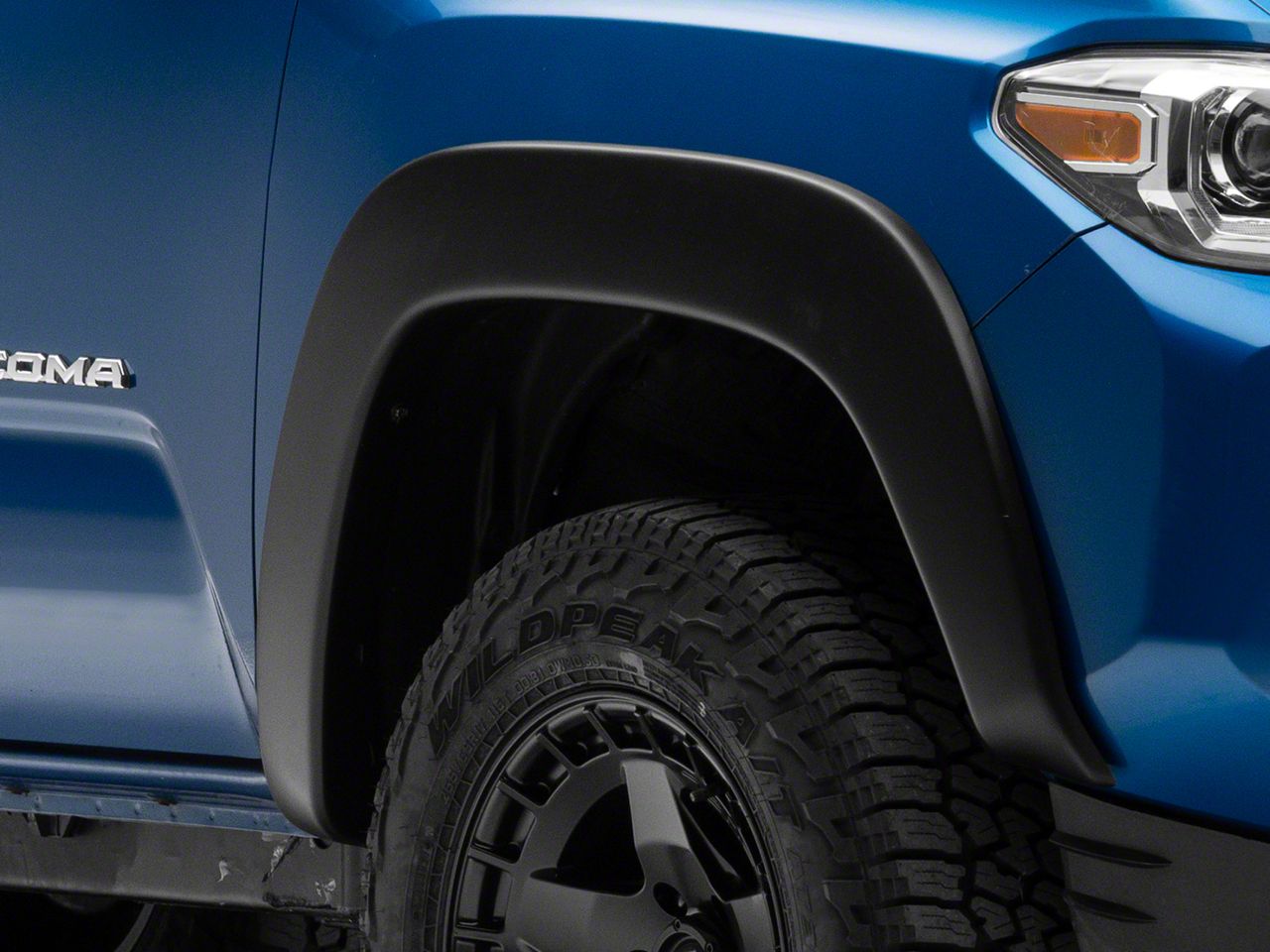 Application. These Textured Elite Series Sport Style Fender Flares fit all 2016-2023 Toyota Tacoma models.