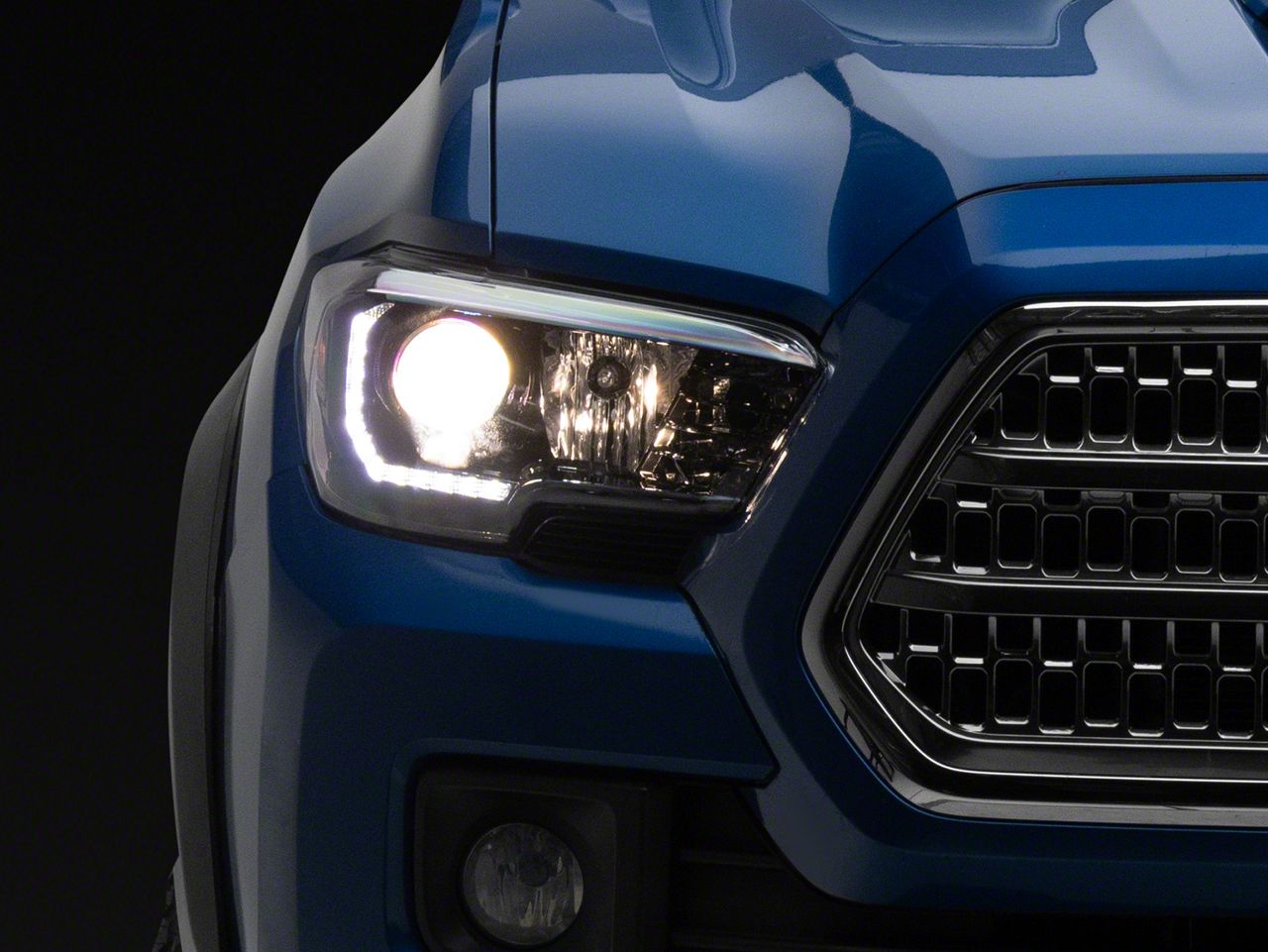 Application. The Factory Style LED DRL Projector Headlights; Black Housing; Clear Lens are compatible with 2016–2023 Tacoma models.