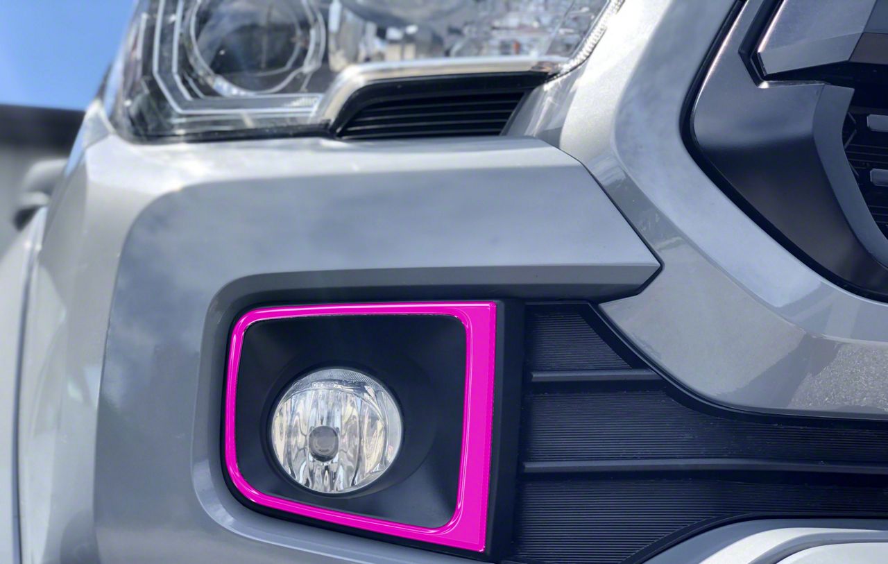 Hot New Accent. If you’re a fan of pink or you just want a head-turning new add-on to your Tacoma’s front end, the Fog Light Accent Trim in Hot Pink is perfect for you. This pair of accent trim overlays around the outside of the fog lights for a hot new look on your ride’s exterior. This accent trim also protects the surrounding area of your fog lights against scratches and hides any present imperfections.