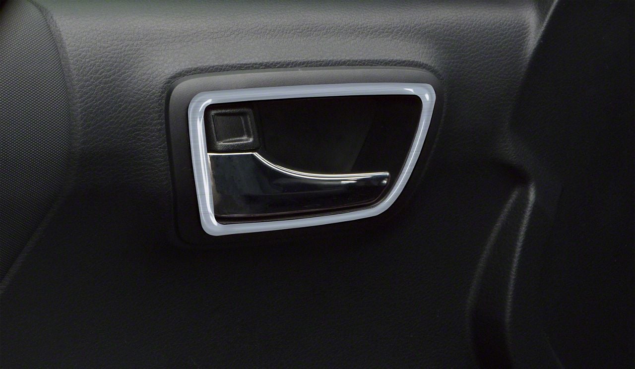 A Touch of Interior Style. This Front Door Handle Surround Accent Trim; Brushed Silver gives your Tacoma's interior a clever new style enhancement in a seldom thought-of place. A set of 4, these pieces are designed to fit snugly on the trim around your truck's door handle.