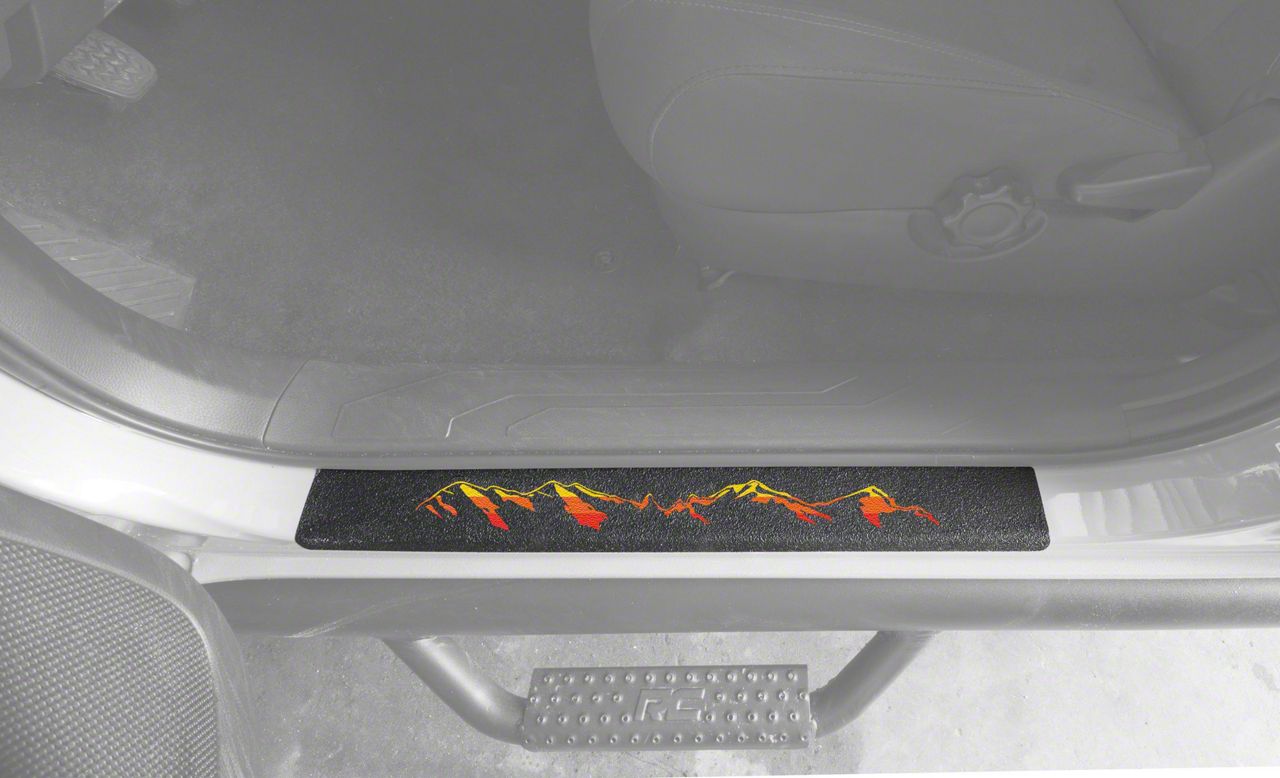 Reliable Sill Protection. Your front door sill receives a lot of traffic that may cause it to wear prematurely, so install this protection unit to prolong its lifespan. This unique-looking product features an appealing mountain logo and striking colors that add a distinct flair to your truck. This model is perfect if you want to shield your sill from dirt, rocks, chipping, paint, scratches, and other imperfections.