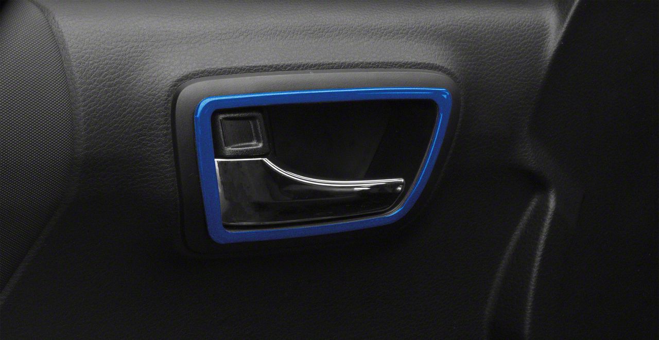 Interior Styling. This Front and Rear Door Handle Surround Accent Trim; Blazing Blue is a wonderful complementary style piece for your Tacoma's interior. With 4 pieces, this set is designed to position on the trim around the door handle.