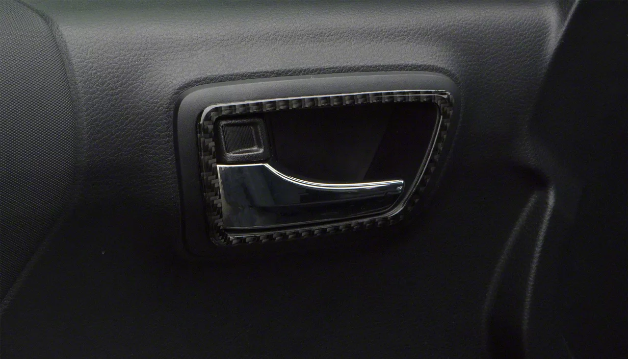 Interior Styling. This Front and Rear Door Handle Surround Accent Trim; Domed Carbon Fiber is a wonderful complementary style piece for your Tacoma's interior. With 4 pieces, this set is designed to position on the trim around the door handle.