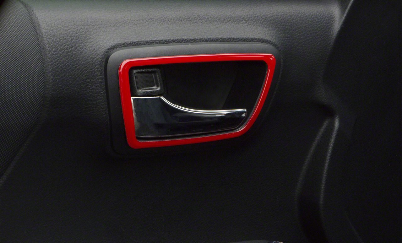 Interior Styling. This Front and Rear Door Handle Surround Accent Trim; Gloss TRD Red is a wonderful complementary style piece for your Tacoma's interior. With 4 pieces, this set is designed to position on the trim around the door handle.