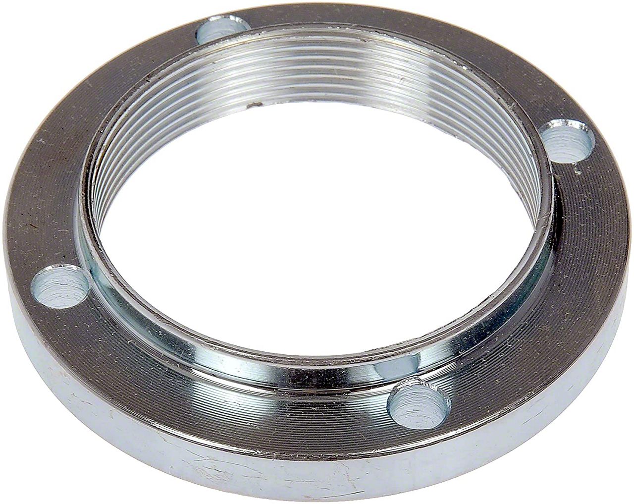 Installation. This hub nut is a direct replacement and installs easily using standard tools. It threads into the existing hub assembly without the need for modification, making it a straightforward replacement part for routine maintenance or repairs.