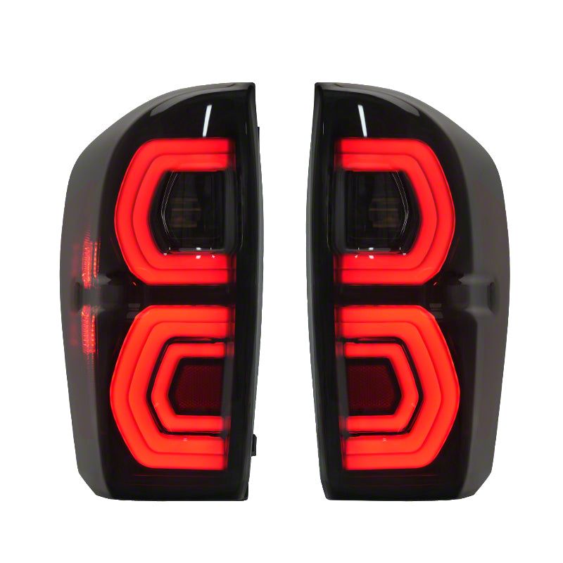Application. This Full LED Tail Lights (Black Housing and Smoked Lens) fits 2016-2023 Toyota Tacoma models.