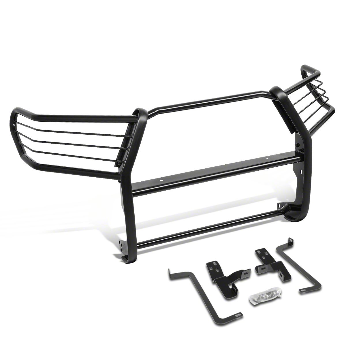 Bolt-On Installation. Featuring a straightforward installation, this Black Grille Guard directly bolts onto the factory mounting slots of your truck. The bolt-on installation process completes with light to moderate mechanical skills and some basic hand tools.