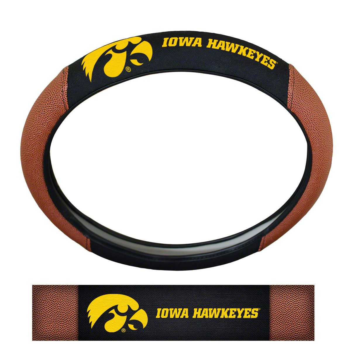 Grip Steering Wheel Cover with University of Iowa Logo; Tan and Black (Universal; Some Adaptation May Be Required)