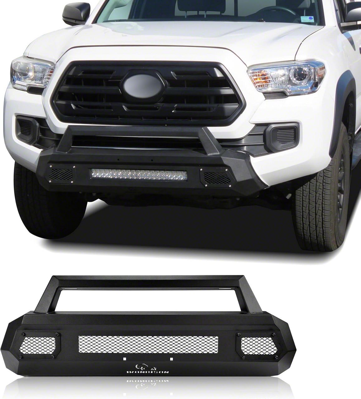 Application. This Guardian Stubby Bumper fits 2024-2026 Toyota Tacoma models. It is a direct replacement for your original bumper, providing better protection and a more aggressive appearance. The included components, such as the mesh fill panels and LED brackets, allow for customization, while the bumper's compatibility with light bars ensures improved visibility on the road.