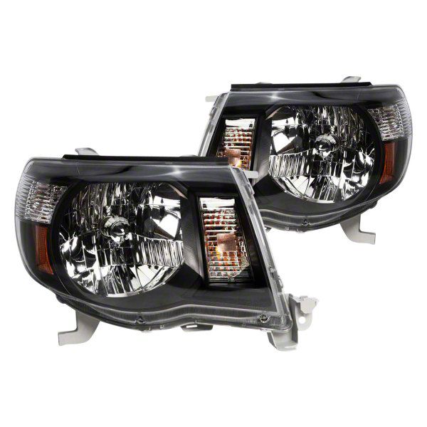 Application. These Halogen Headlights; Black Housing; Clear Lens fit all 2005-2011 Toyota Tacoma models.