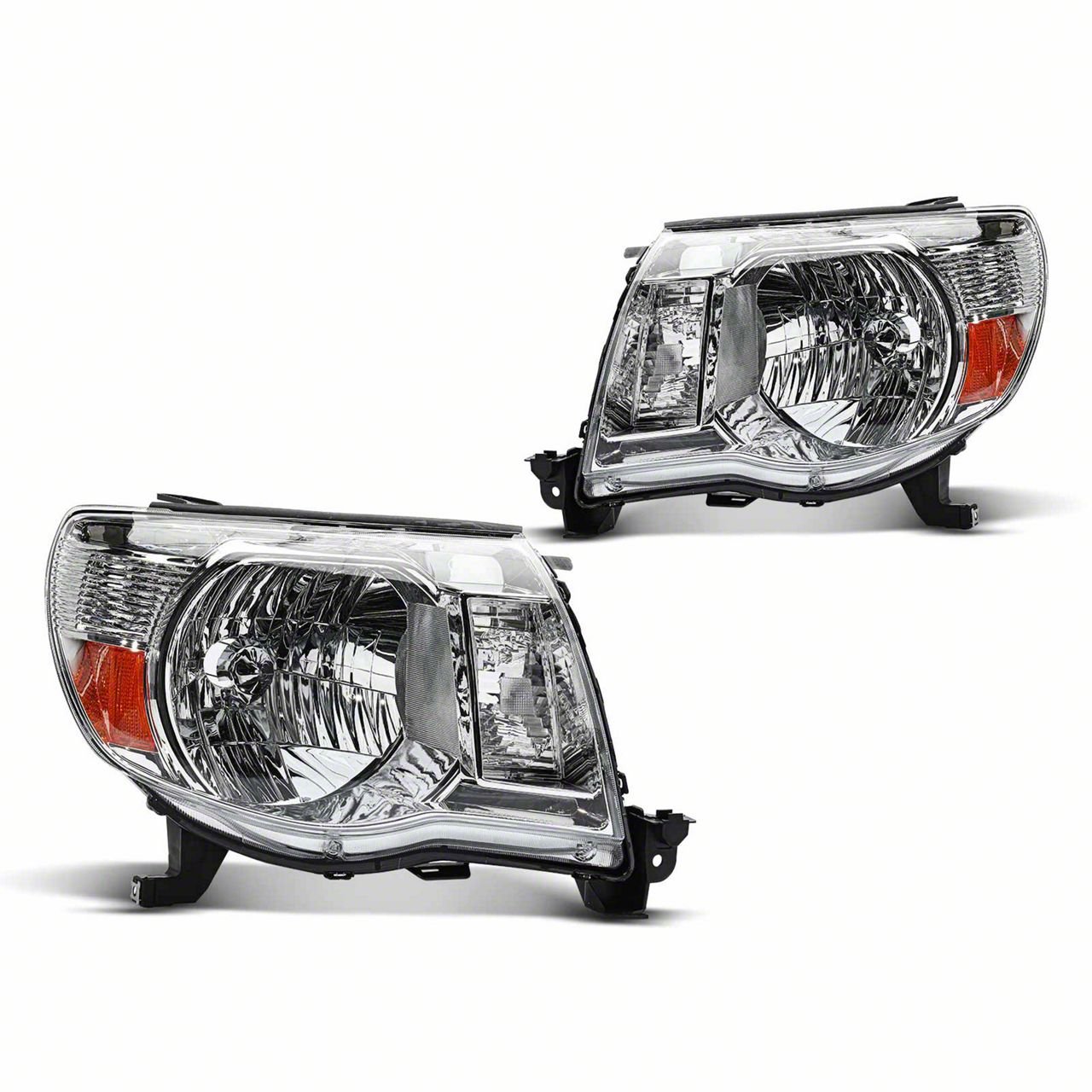 Reliable Illumination. Upgrade the lighting on your 2005-2011 Toyota Tacoma Pre Runner or X-Runner with these polished chrome headlights. Featuring a stock style design, these headlights use halogen bulbs to deliver clear and bright illumination for safe driving in various conditions.