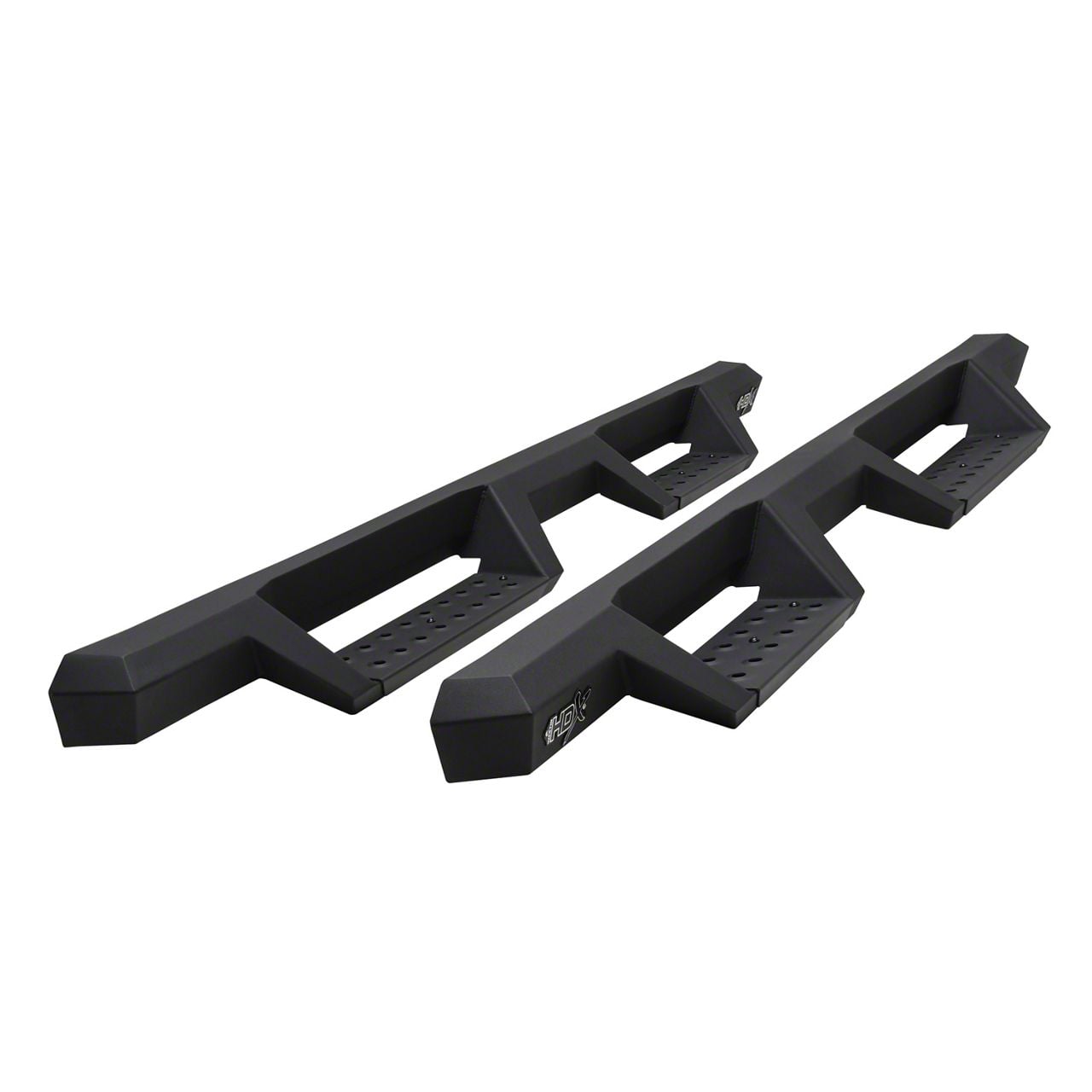 Tough and Reliable. Made of heavy-duty e-coated steel with punched steel footpads, these 1-piece nerf bars can handle various off-road impacts while giving you high-traction footings. These step bars mount high and tight for an integrated look that will not compromise your truck’s aggressive off-road stance. Moreover, these nerf bars are fortified with a textured black powder coating for an added layer of protection from abrasion, chipping, and corrosion.