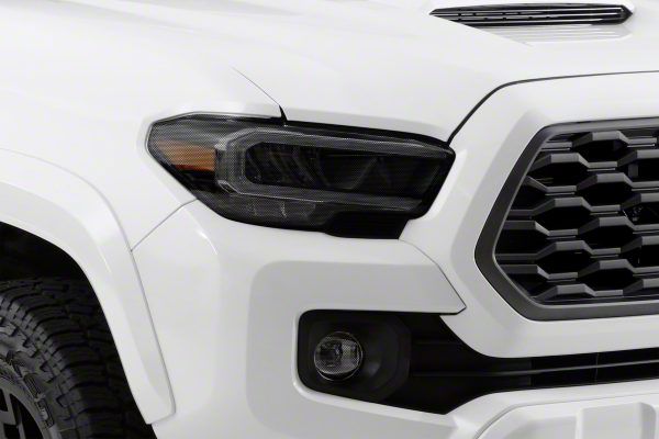 Sleek Styling. Step up your game with the new Headlight Covers; Carbon Fiber Look for your Tacoma. Designed with aesthetics and protection in mind, it is made from high-quality materials that simulate the distinguished look of carbon fiber. They serve as a shield for your headlights against debris, dirt, and harsh weather, preserving the longevity of your lights while enhancing the look of your vehicle.