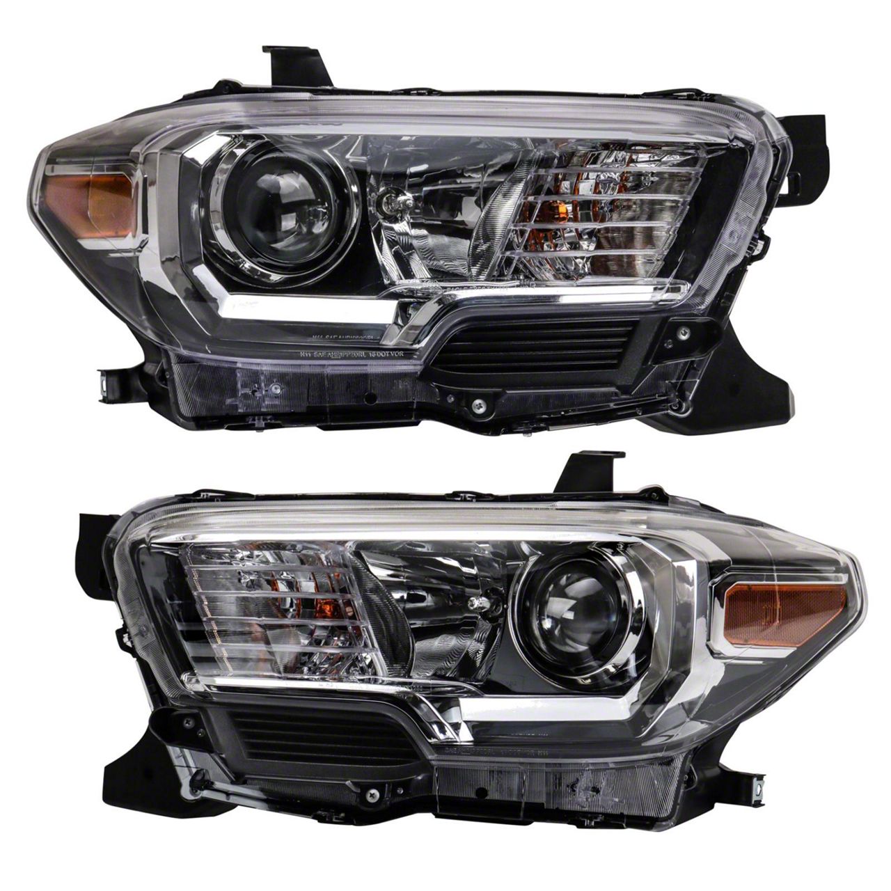 Headlights; Chrome Housing; Clear Lens (16-17 Tacoma w/ Factory Halogen Headlights & w/o Fog Lights)Find parts that fit my vehicle