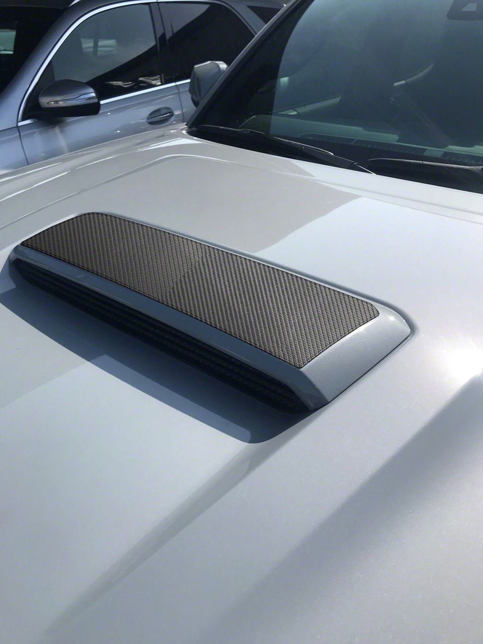 Stylish Carbon Fiber Hood Scoop. Upgrade your Tacoma with this aggressive Hood Scoop Overlay. Its stylish domed resin and carbon fiber construction give this hood scoop an elegant look, while its signature shape gives the roof of your Tacoma a little extra bite.