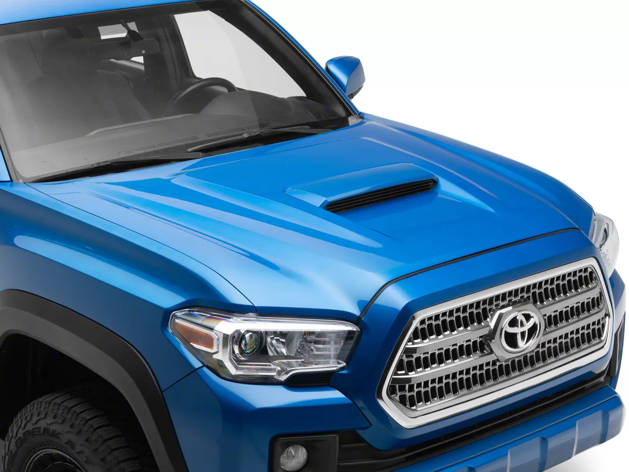 Application. This unpainted Hood with a Scoop Mounting Opening that is CAPA certified is made to fit all 2016-2023 Toyota Tacoma's.