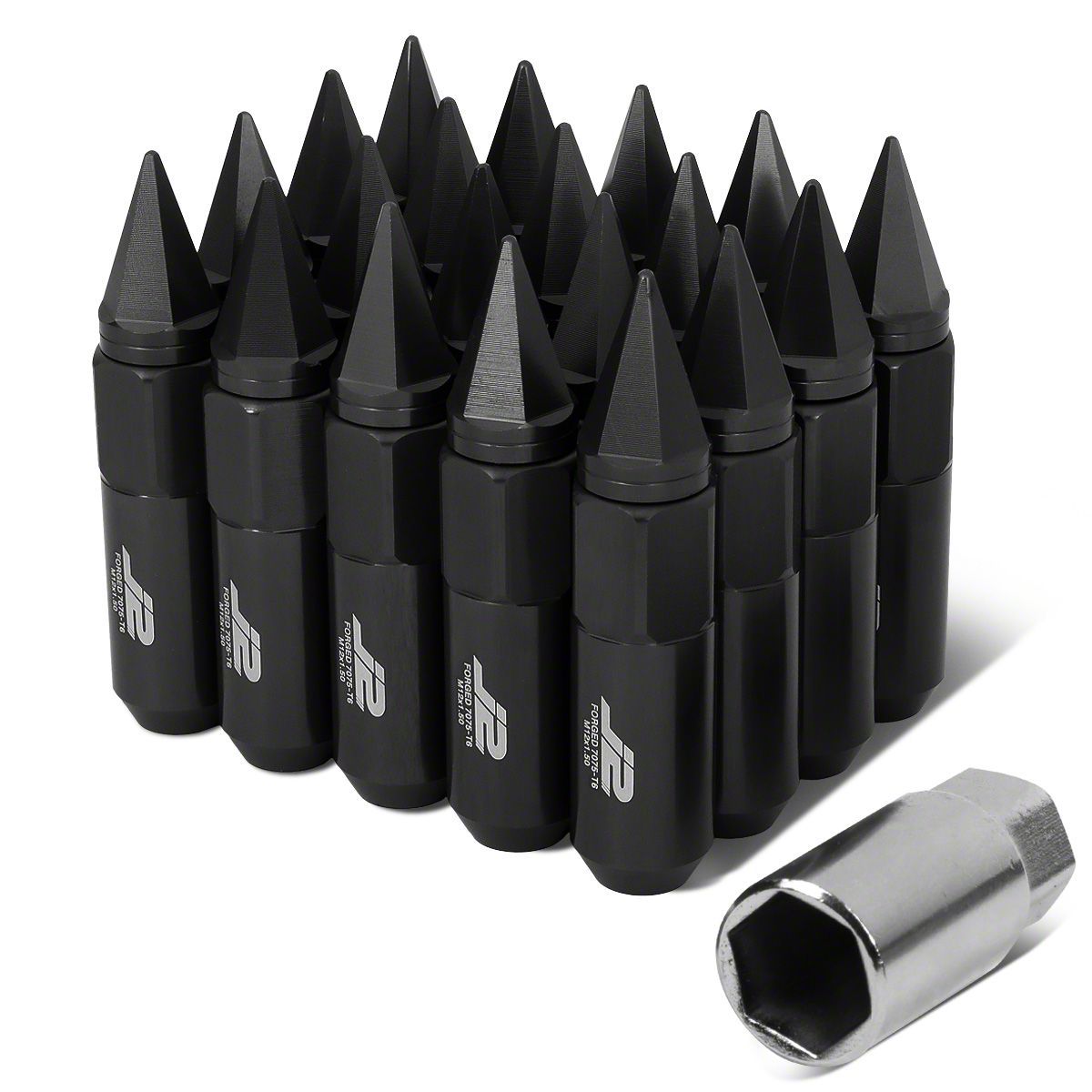 J2 Engineering Black Aluminum Spiked Lug Nuts; M12 x 1.5; 90mm; Set of 20