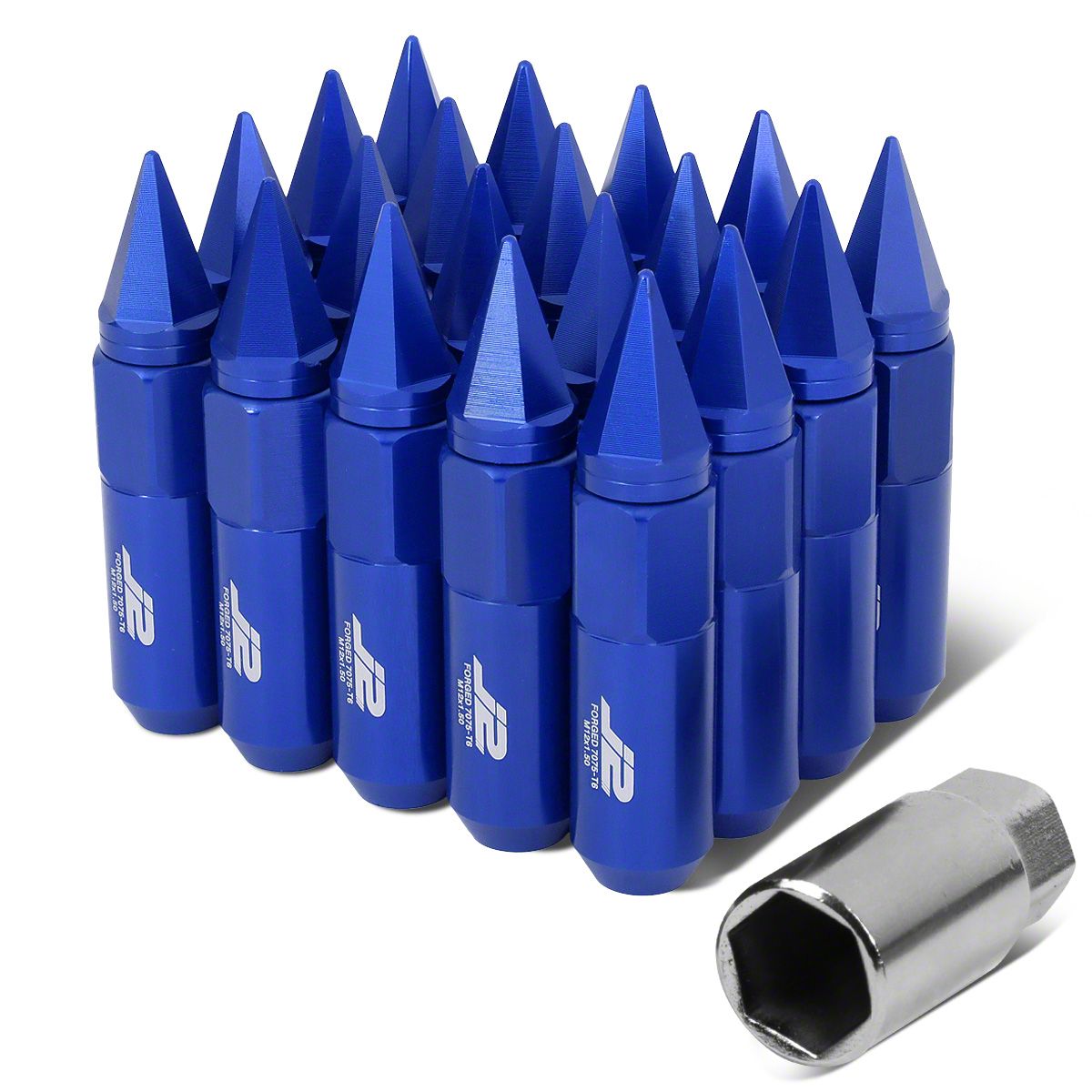 J2 Engineering Blue Aluminum Spiked Lug Nuts; M12 x 1.5; 90mm; Set of 20