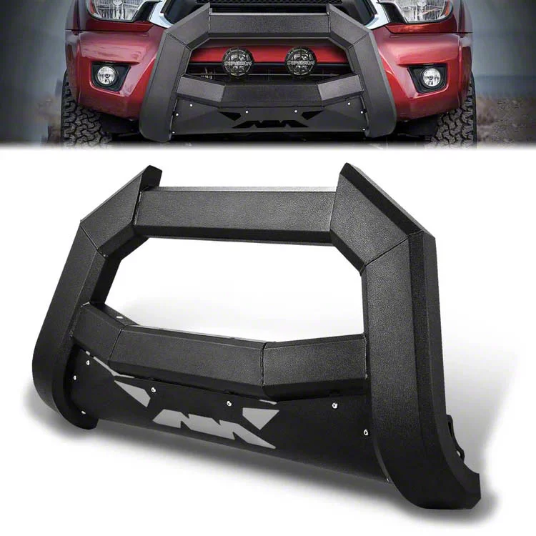 Front-End Guard Upgrade. The J2 Square Bull Bar offers reliable protection to the front end of your Toyota Tacoma, helping shield it from minor impacts and road debris. It not only boosts your vehicle’s defense but also enhances its rugged appearance with a bold, square-tube design. This bull bar is a solid upgrade for drivers seeking durability and style in one package.