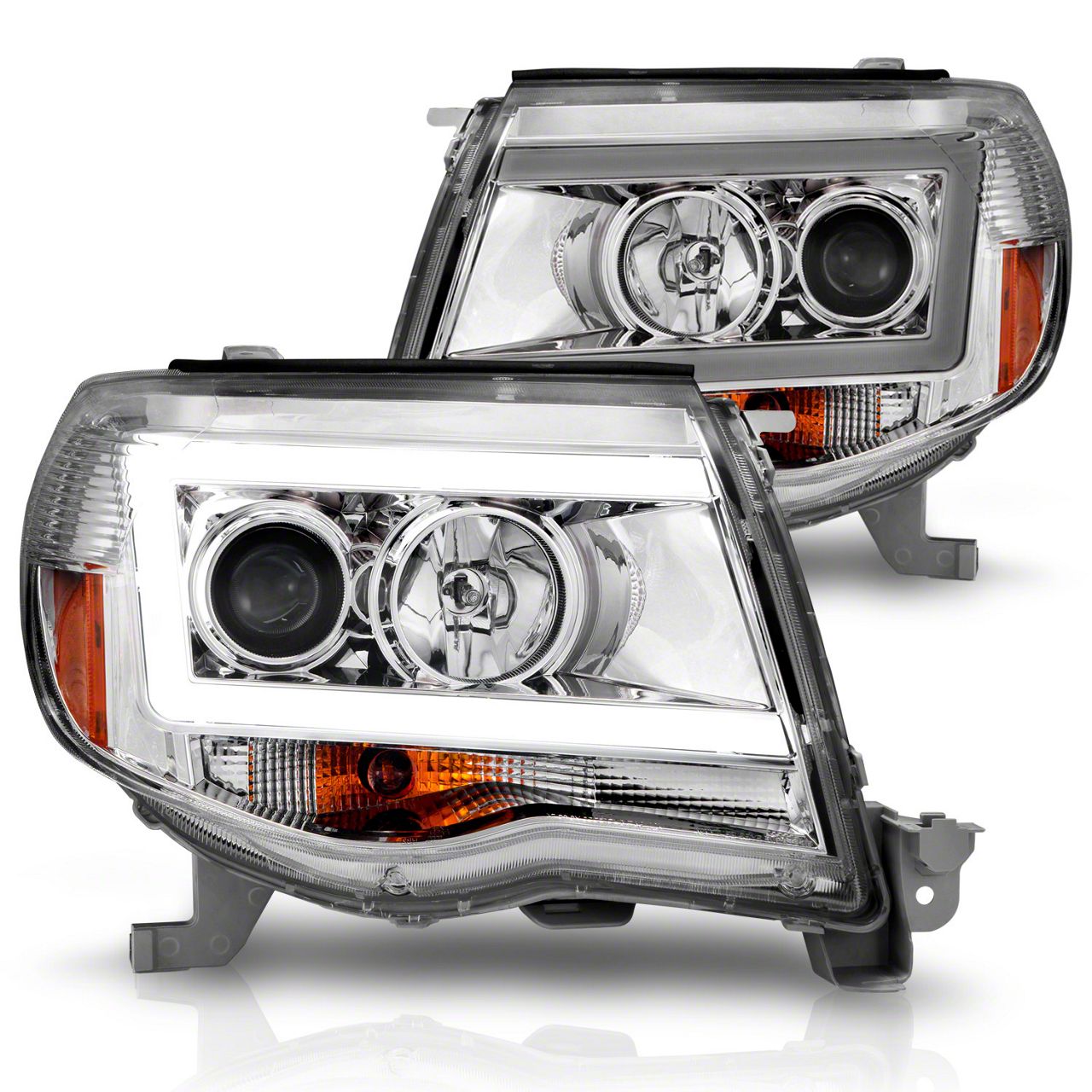Modern Styling. A pair of chrome LED DRL Projector Headlights are an excellent way to add an updated modern appearance to your Toyota Tacoma, all while improving your nighttime visibility. With an impressive DRL Light Bar design, these Headlights will give your Tacoma a whole new look.