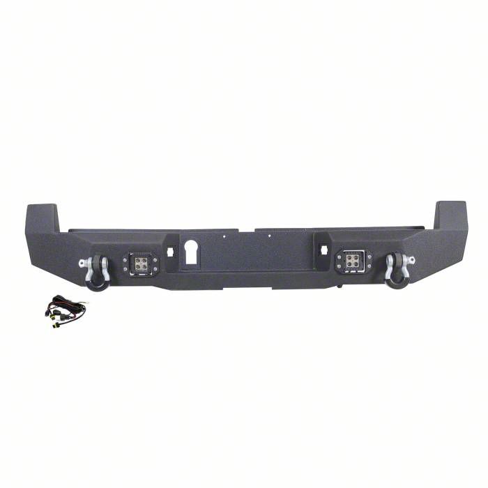 Auxiliary Lights Included. To keep your trails illuminated, this Rear Bumper is equipped with a pair of bright LED cube lights. These lights are designed to give you reliable trail illumination under low-visibility conditions.