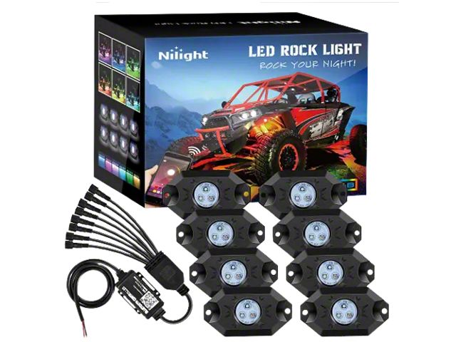 Application. The LED RGB Rock Lights with Bluetooth Controller; Set of 8 offer universal fitment.