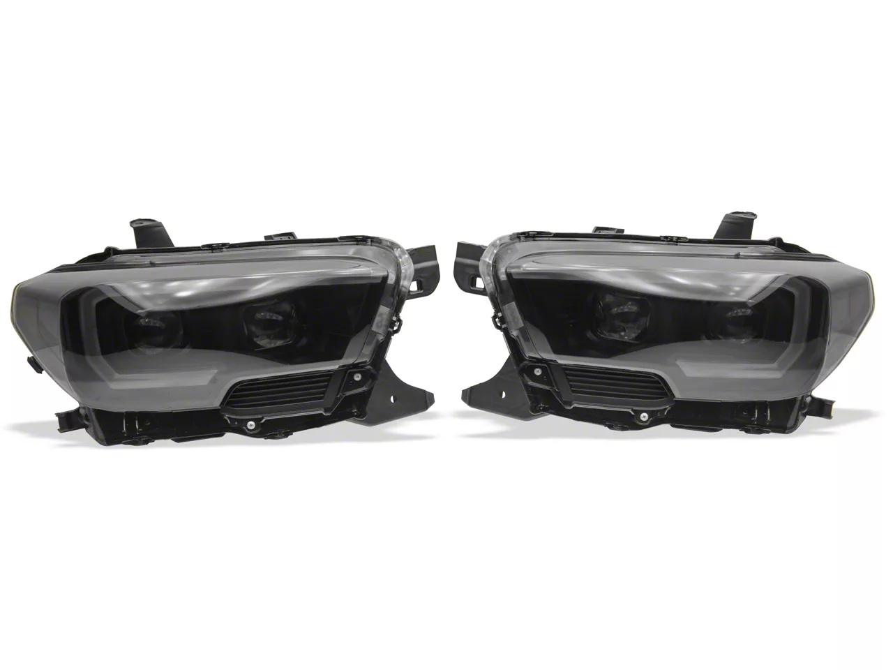 Modern Styling. A pair of smoked black Light Bar DRL Projector Headlights are an excellent way to add an updated modern appearance to your Toyota Tacoma, all while improving your nighttime visibility. With an impressive DRL Light Bar design, these Headlights will give your Tacoma a whole new look.