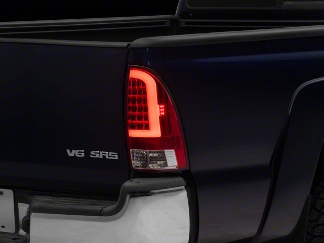Application. These Light Bar LED Tail Lights with Red Clear Lenses are made to fit 2005-2015 Toyota Tacoma models without factory LED tail lights.