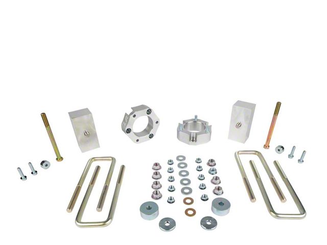 Clear Anodized Look. This kit includes CNC-machined 1-inch solid aluminum blocks that provide the lift you desire. The clear anodized finished front spacers not only add a sleek look but also offer corrosion resistance. The kit also includes differential drop and bump stop spacers to maintain proper suspension geometry.