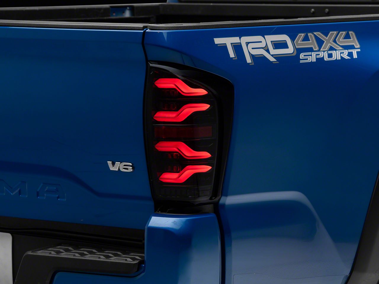 Application. The LUXX-Series LED Tail Lights; Alpha Black Housing; Clear Lens fits 2016-2023 Tacoma Models.