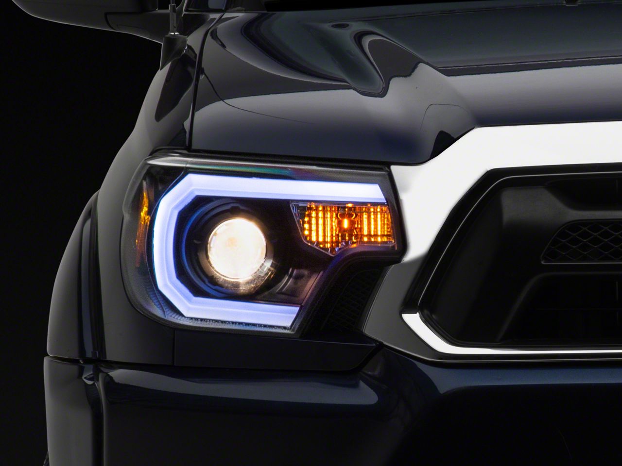 Application. These Light Bar DRL Projector Headlights; Black are designed to fit 2012-2015 Toyota Tacoma models. Driver and passenger side included.