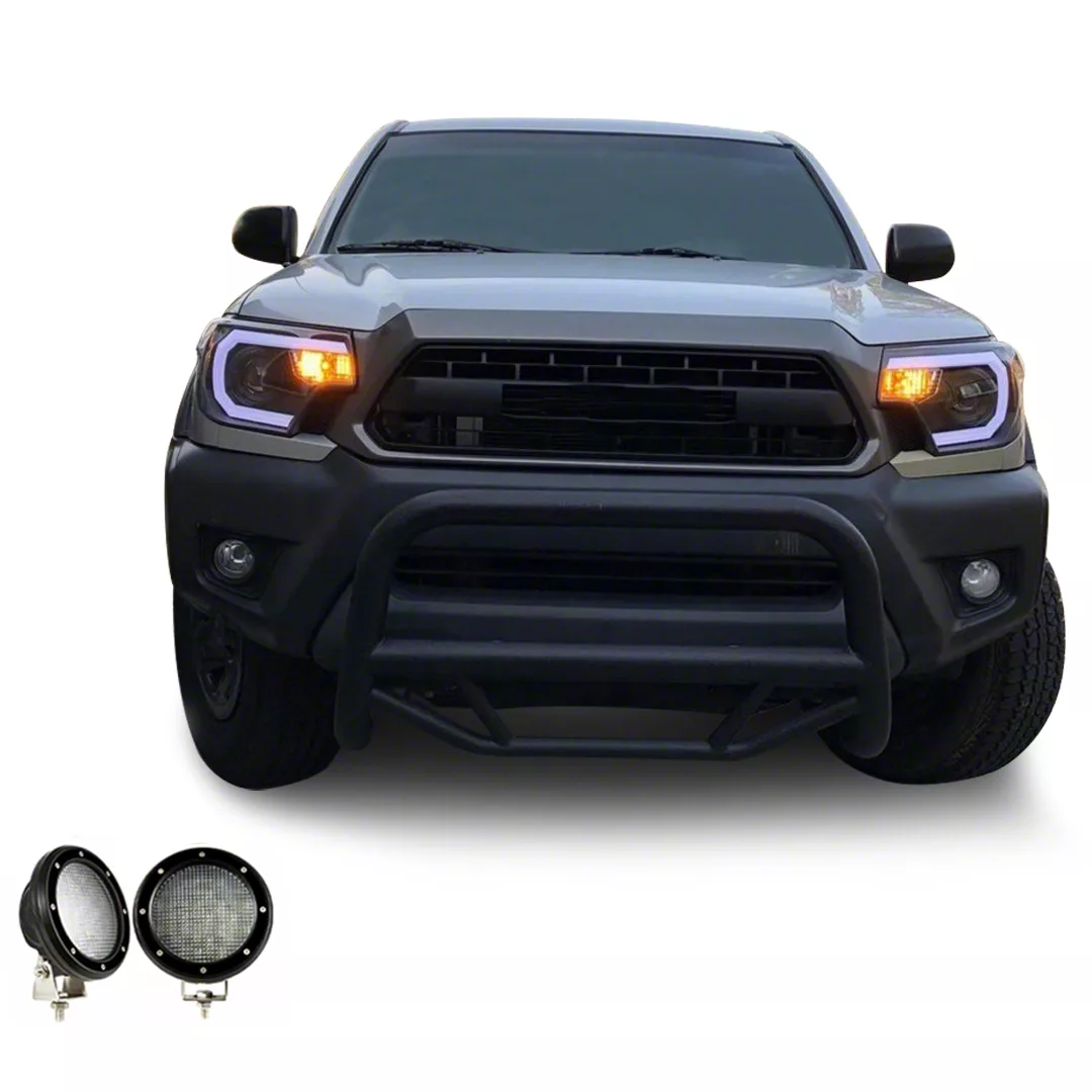 Application. The Max Bull Bar with 5.30-Inch Black Round Flood LED Lights fits 2005-2015 Tacoma models.