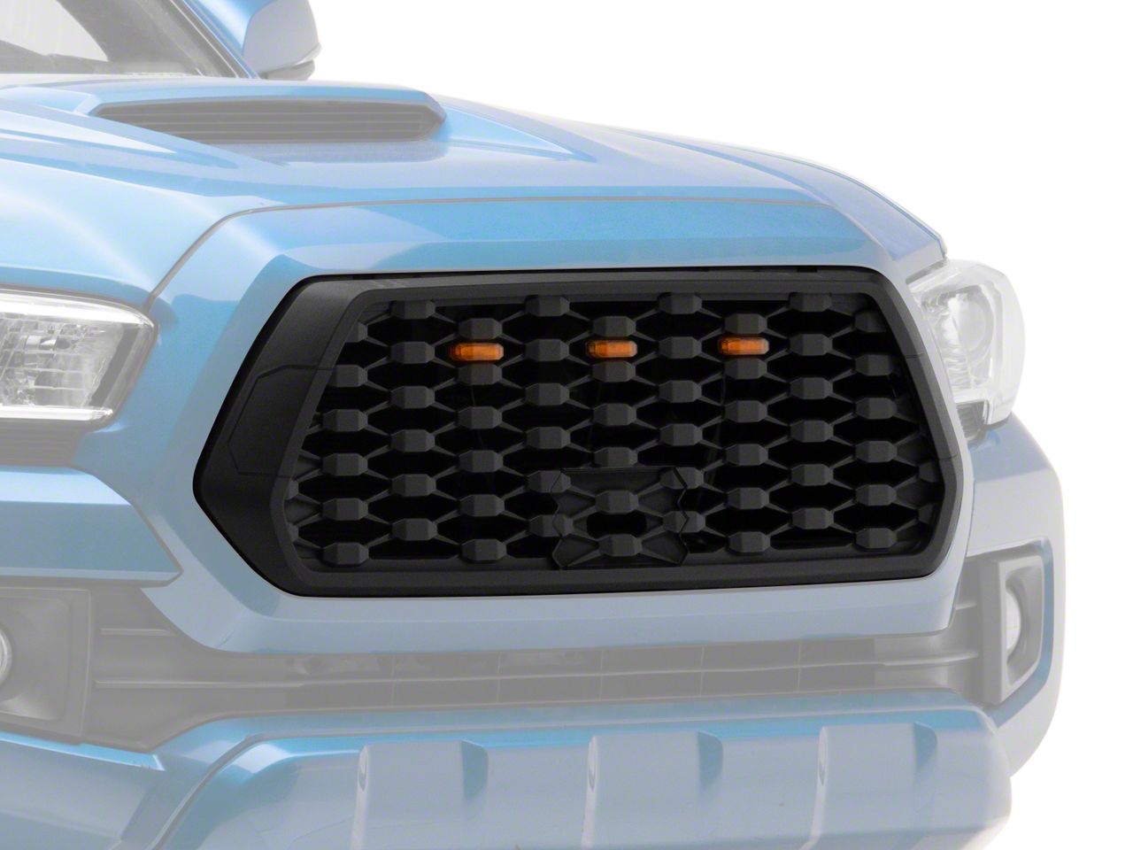 Application. An American Modified Mesh Upper Replacement Grille with Amber Lights is expertly manufactured to fit 2016-2023 Tacomas.