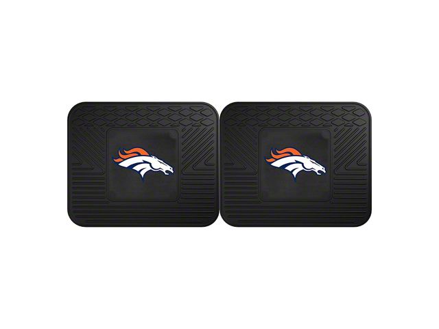 Application. These Molded Rear Floor Mats with officially-licensed Denver Broncos logo feature a universal design so they will fit most makes and models of vehicles. Sold as a set of two Mats.
