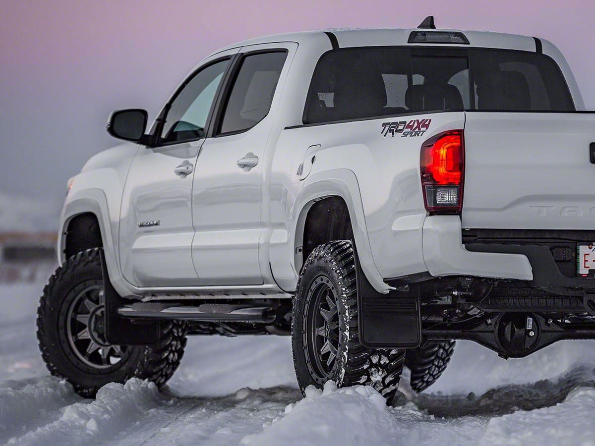 Application. The Mud Flaps; Front and Rear fit all 2016-2023 Toyota Tacoma models.