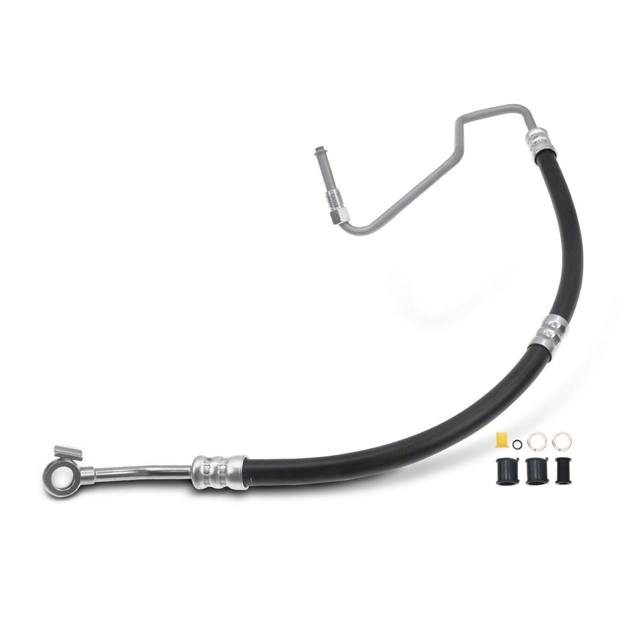 Installation. Installing the Power Steering Pressure Line Hose Assembly is moderately easy for DIYers and professionals alike. It fits directly in place of the stock hose without the need for major routing changes. Drilling is not required—installation involves simply removing the old line and tightening the new fittings to torque specifications.