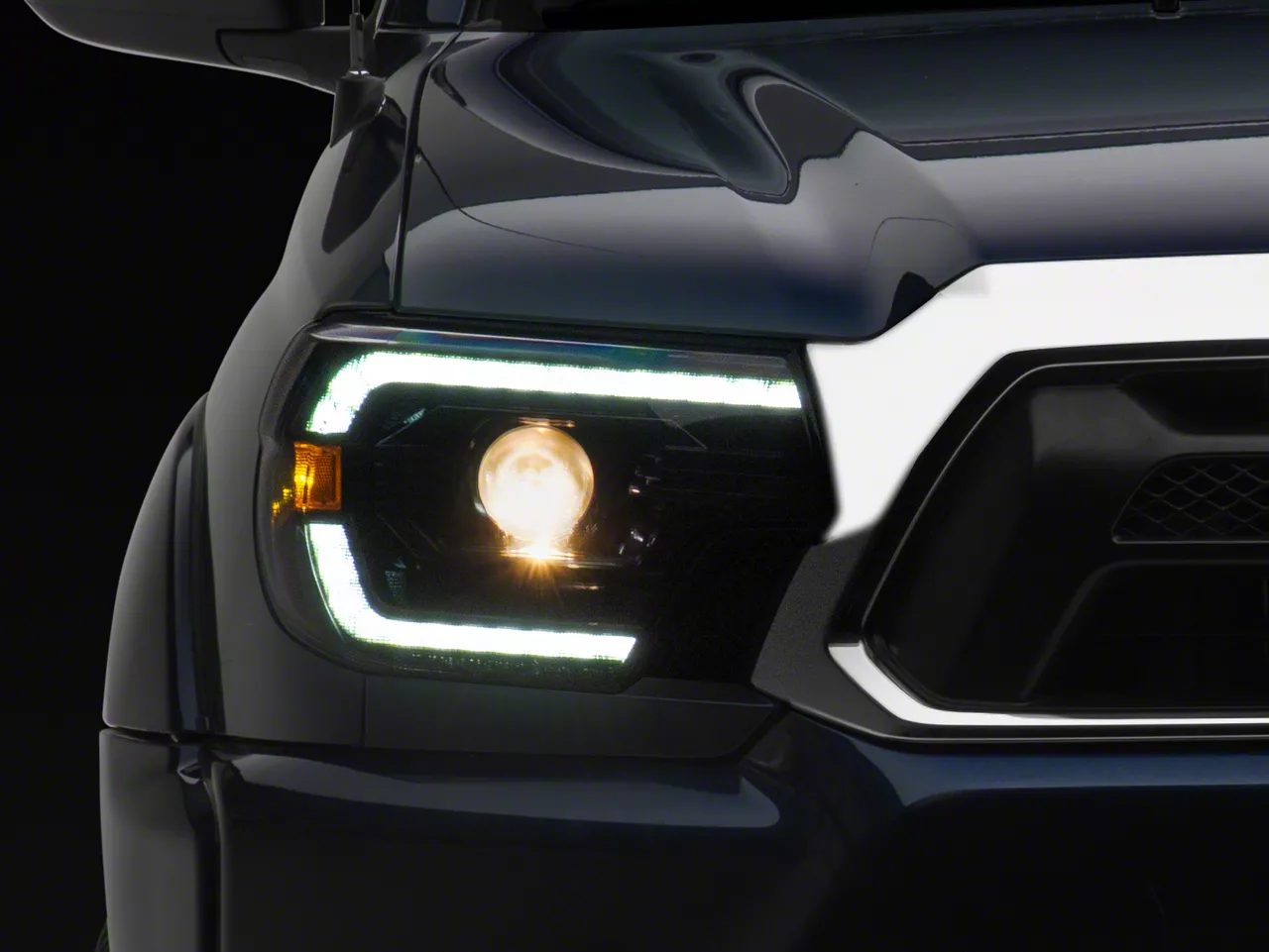 Application. This pair of PRO-Series Projector Headlights; Alpha Black; Clear Lens fits all 2012-2015 Tacomas.