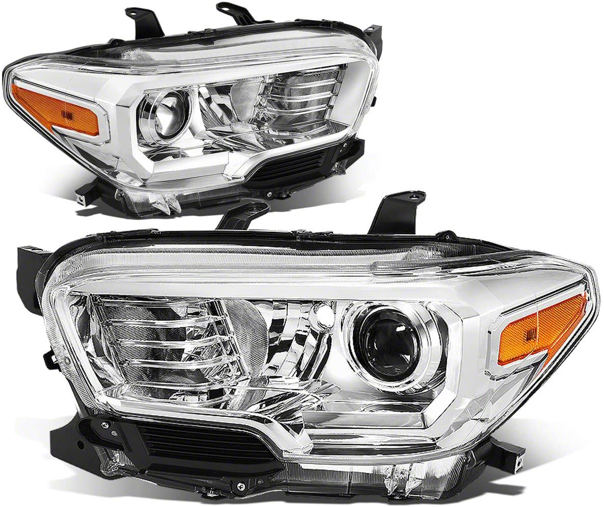 Application. This pair of Chrome Projector Headlights with Amber Corners is intended for use on all 2016 to 2023 Toyota Tacoma models without Factory LED DRLs.
